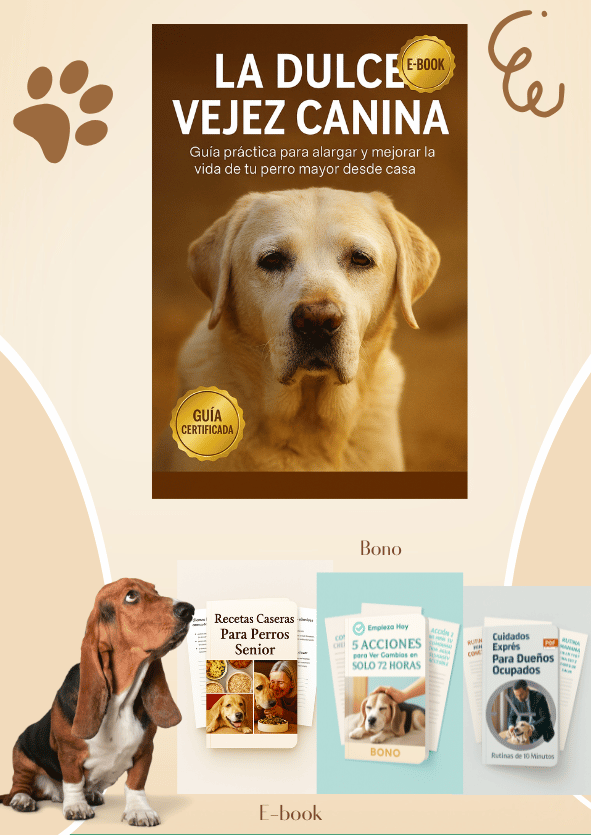 “La Dulce Vejez Canina” es la guía que te muestra, paso a paso, cómo cuidar mejor a tu perro senior para alargar su vida, reducir su dolor y fortalecer el vínculo en su etapa más delicada.
